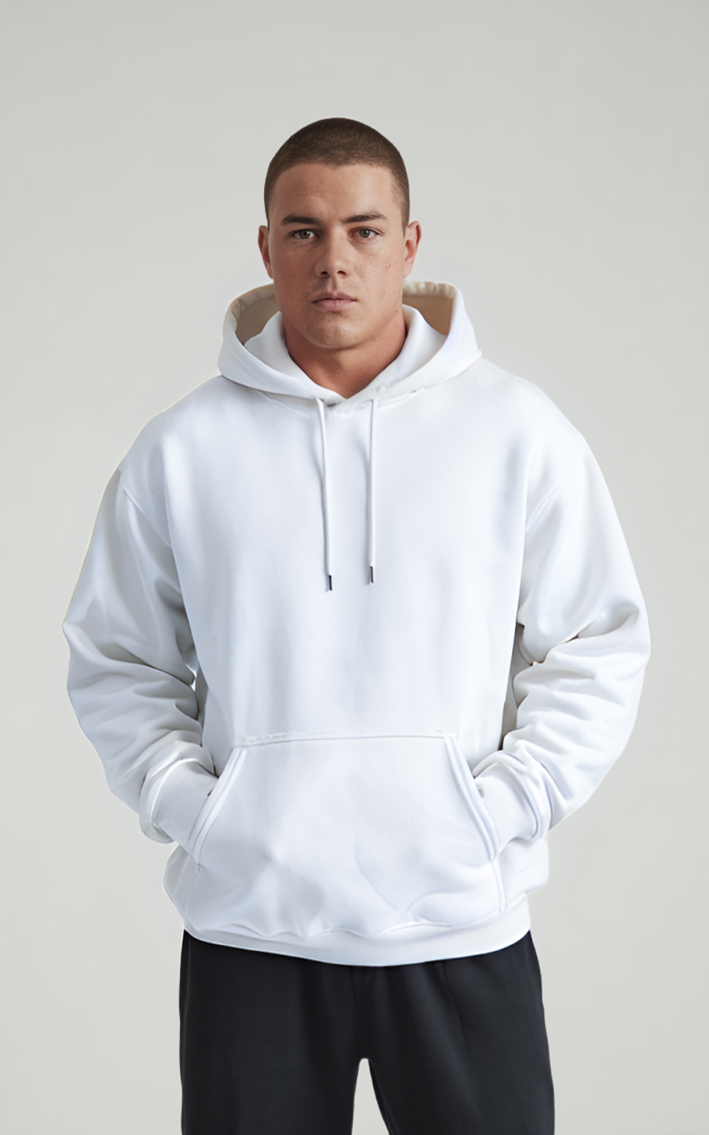 FELPE€73,05 IVA inclusa1 qualità6 colori6 taglieManiche montate; Polsini e fondo del capo a costina 2×2; Cuciture lateriali; Collo incrociato; Tasca a marsupio; Cappuccio doppio tessuto; Nastro di rinforzo sul collo